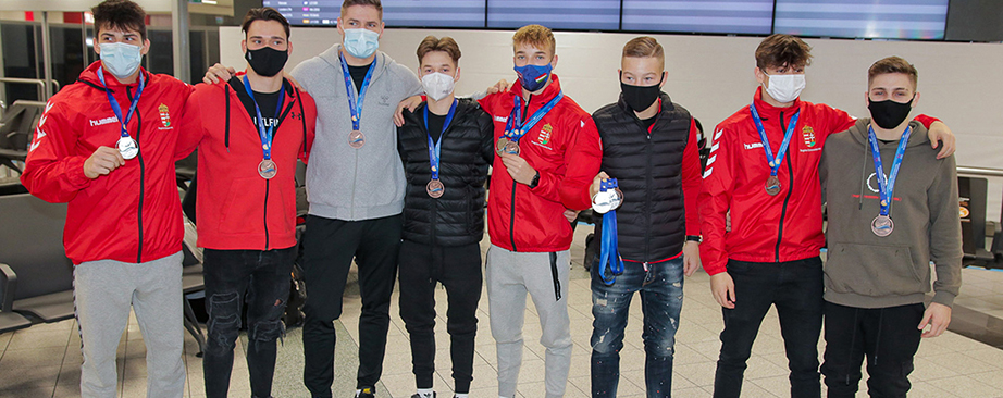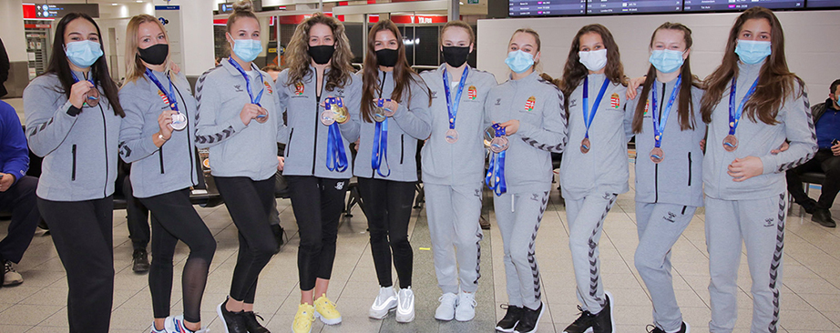 Keleti Ágnes öt olimpiai aranyérme EB-ezüstérmes junior férfi csapat EB-bronzérmes junior női csapat Kocsis Evelin - ritmikus gimnasztika junior EB-bronzérmes Keleti Ágnes 100 éves Férfi csapat EB - hazaérkezés Női csapat EB - hazaérkezés